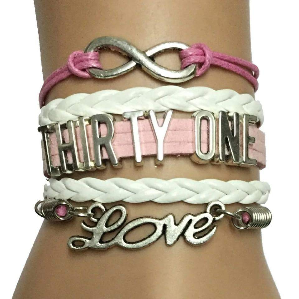Thirty-One Wrapped Bracelet. This Bracelet is Pink, White and Peach. With silver charms. The bracelets come with a adjustable links that will fit up to a 9" wrist.