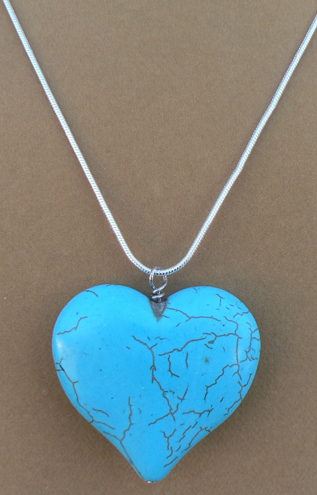 Here is a Turquoise Heart Pendent. The necklace chain is nickel free. The chain is 16" long with a 3" extension chain. There is a silver plated lobster clasp. This is such a beautiful piece.