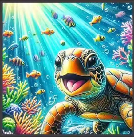 Here is a Turtle With Fish Diamond Painting Kit. Size is approximately 20cm by 20cm. This is a full picture with round diamond dots. The kits come with a picture, diamond dots, tray, tool and wax. This is a full picture with round diamond dots.