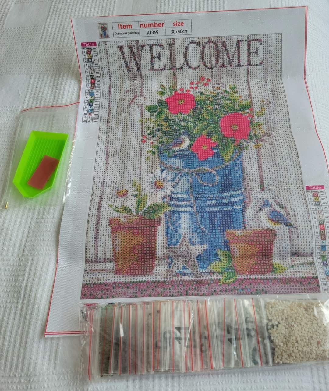 Kits come with picture, diamond dots, tool, tray and sticky wax.