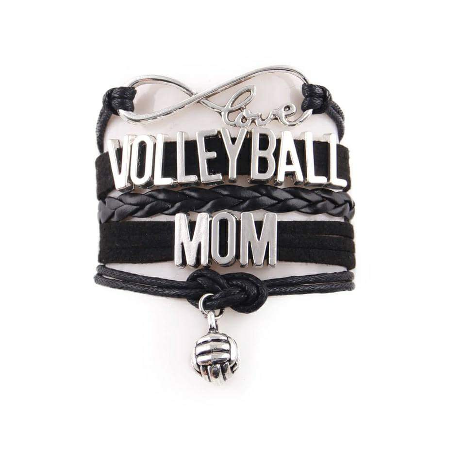 Volleyball Mom Wrapped Bracelet. This Bracelet is Black. With silver charms. The bracelets come with a adjustable links that will fit up to a 9" wrist. There is a silver color lobster clasp.