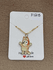 Here is bingo necklace. Bingo has his hands up. The charm and necklace is gold tone. The chain is 16” long.