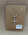 Here is a Heart Symbol Cross Necklace. There is a heart symbol in the middle of the cross. There is rhinestone on the cross. The charm and chain is silver tone. The chain is 16” long.