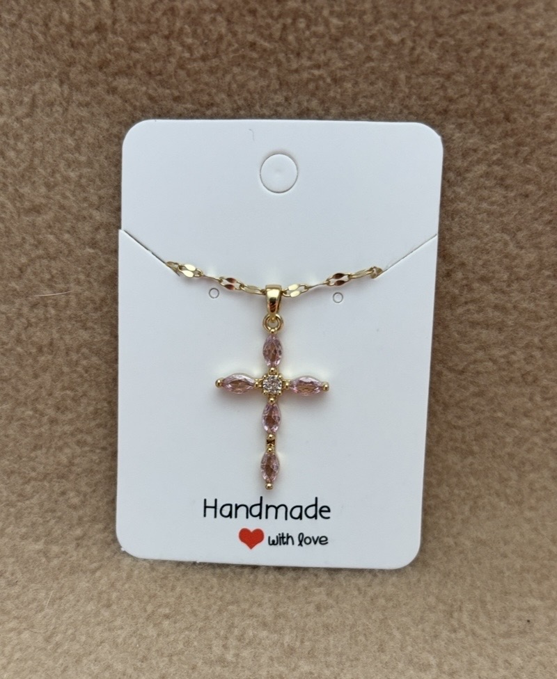 > Pink Stone Cross Necklace
