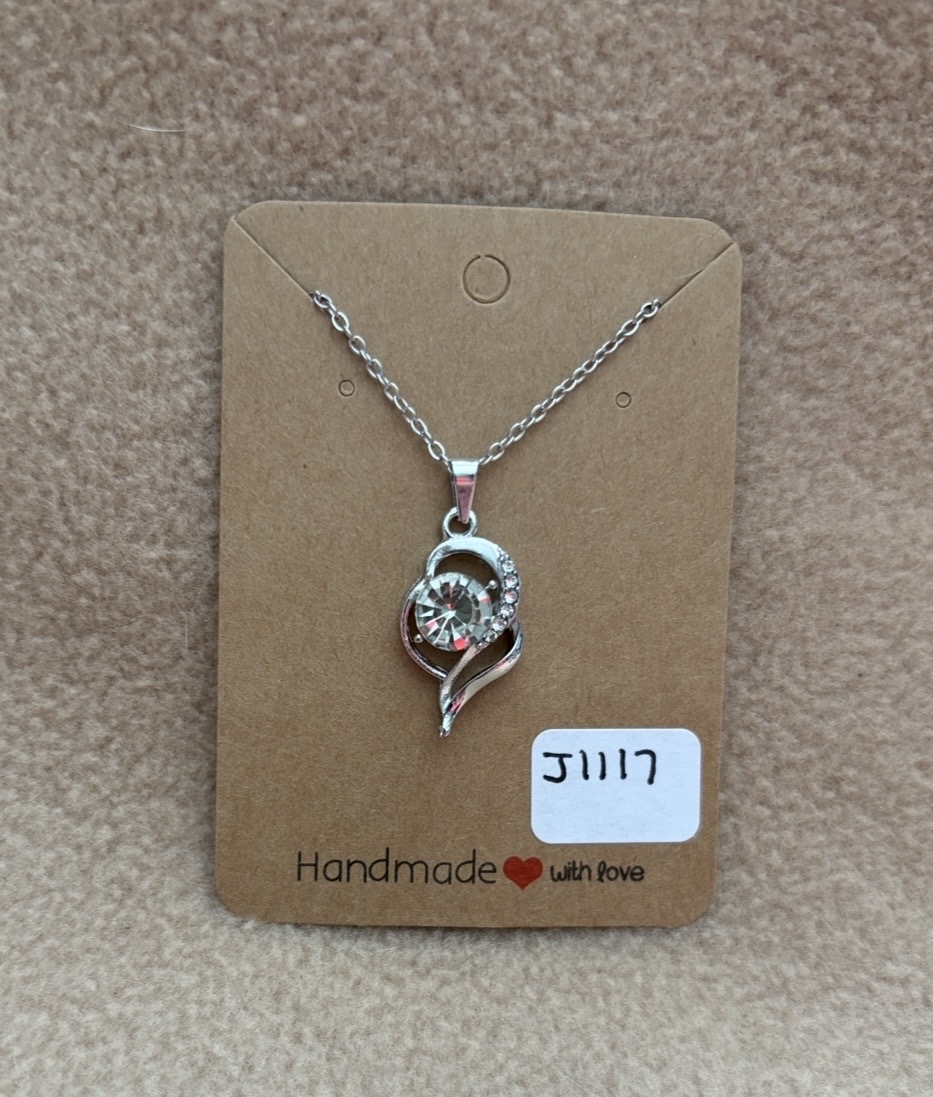Here is a sparkling classic necklace. In the middle is a large circle clear rhinestone. These is small clear rhinestone on the outside of the necklace. The charm and chain is silver tone. The chain is 16” with a 2” extension chain.